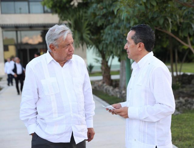 “Hoy en mi último día como gobernador de Quintana Roo, doy la bienvenida al presidente @lopezobrador_ en revisión de tramos 4, 5, 6 y 7 del @TrenMayaMX, Aeropuerto de Chetumal, Parque del Jaguar y Aeropuerto en Tulum y bulevar Colosio y Puente Nichupté en Cancún”, informó el exmandatario en sus redes sociales.