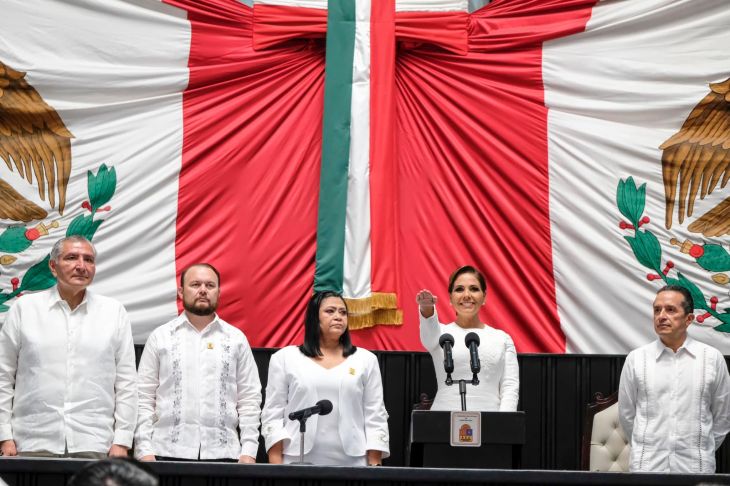 La primera plana nacional y local de Morena arropó a Mara Lezama, su segunda gobernadora en la península de Yucatán. Ella protestó "cumplir y hacer cumplir" la Constitución Política de los Estados Unidos Mexicanos y la del estado de Quintana Roo y en su discurso aseguró que es un honor y una altísima responsabilidad el tomar el cargo.