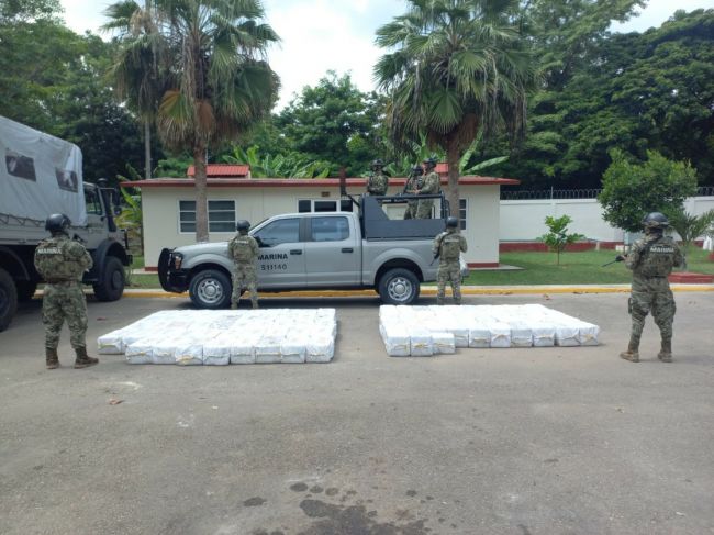 La Secretaría de Marina (Semar) aseguró mil 800 kilogramos de cocaína frente a las costas de Bacalar, Quintana Roo, que eran transportados a bordo de una embarcación menor.