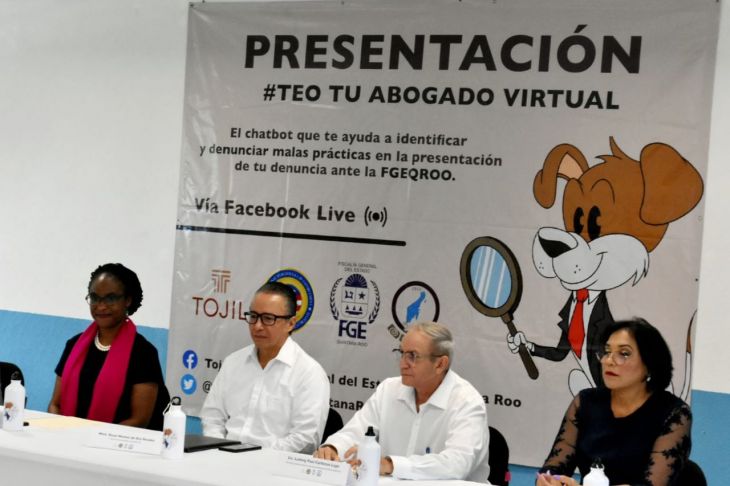 El fiscal general de Quintana Roo, Óscar Montes de Oca, en coordinación con la organización Tojil y la Oficina Internacional de Asuntos Antinarcóticos (INL) de la Embajada de Estados Unidos, anunció el lanzamiento del chatbot Teo, una herramienta tecnológica que coadyuvará a mejorar los servicios que se prestan al interior de la Fiscalía de Quintana Roo.