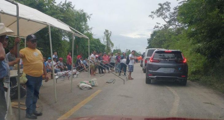 Y es que los ejidatarios continúan con el bloqueo carretero que impusieron desde el pasado 1 de noviembre, ahora de manera intermitente, pues abren el paso por espacio de una hora cada dos horas e incluso en algunos casos conductores han denunciado que tuvieron que pagar una cuota de 50 pesos para que los dejaran pasar. Este es el único camino de acceso a Chiquilá, población donde está el muelle desde donde se cruza a Holbox. Los más afectados han sido los camiones que transportan alimentos e insumos y los tours turísticos.