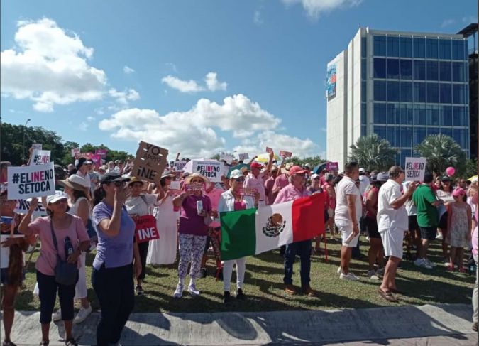 Decenas de personas se manifestaron este domingo en Cancún y Playa del Carmen en favor del Instituto Nacional Electoral (INE) bajo el lema “Yo soy el INE” y el "INE no se toca". Las manifestaciones se dieron en calma, con el acompañamiento de patrullas de Tránsito y Protección Civil; la mayoría de los asistentes vistieron de rosa.