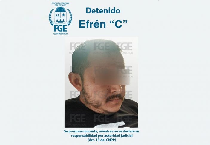 La Fiscalía General del Estado de Quintana Roo informó que elementos de la Policía de Investigación cumplimentaron una orden de aprehensión en contra de Efrén C. por su presunta participación en el delito de feminicidio.