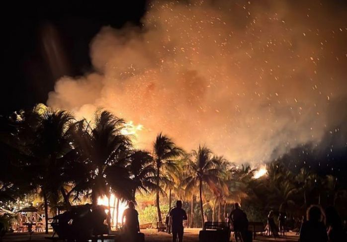 Un incendio registrado la noche de este lunes en la isla de Holbox, al norte del estado de Quintana Roo, redujo a cenizas dos hoteles y generó movilización ciudadana y de las autoridades para sofocarlo.