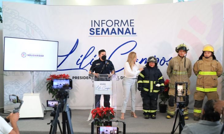 En su informe semanal la munícipe presentó, tal como lo había prometido, los nuevos equipos otorgados a los bomberos, que permiten salvaguardar su integridad física, y que por primera vez reciben un equipo completo que cumple con las normas internacionales para su protección.