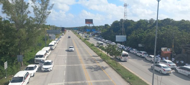 Como medida de inconformidad ante la posible aprobación de la entrada de Uber en la entidad, cientos de taxistas se apostaron a ambos lados de la carretera federal 307 tanto en Playa del Carmen como en Tulum.