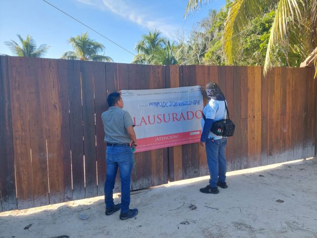 Este viernes 23 de diciembre, personal de la Procuraduría Federal de Protección al Ambiente (Profepa) colocó sellos de clausura a un hotel en proceso de construcción en playa Santa Fe, dentro del Parque Nacional Tulum (PNT).