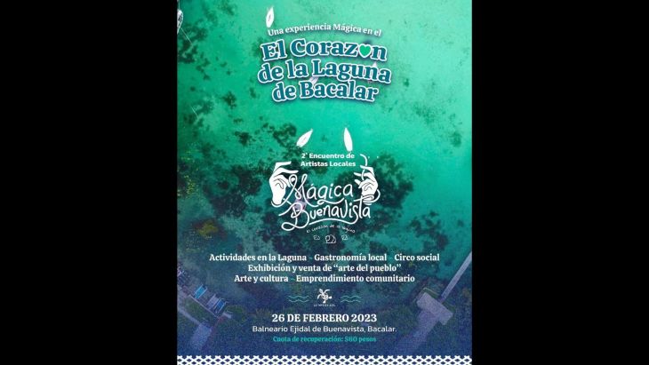 Por segunda ocasión se organizó el Encuentro de Artistas Locales Mágica Buenavista, en el corazón de la laguna de Bacalar, en donde habrá desde actividades en la laguna hasta un circo social, exhibición y venta de arte del pueblo, gastronomía local y emprendimientos comunitarios, con un programa de educación medioambiental y actividades náuticas.