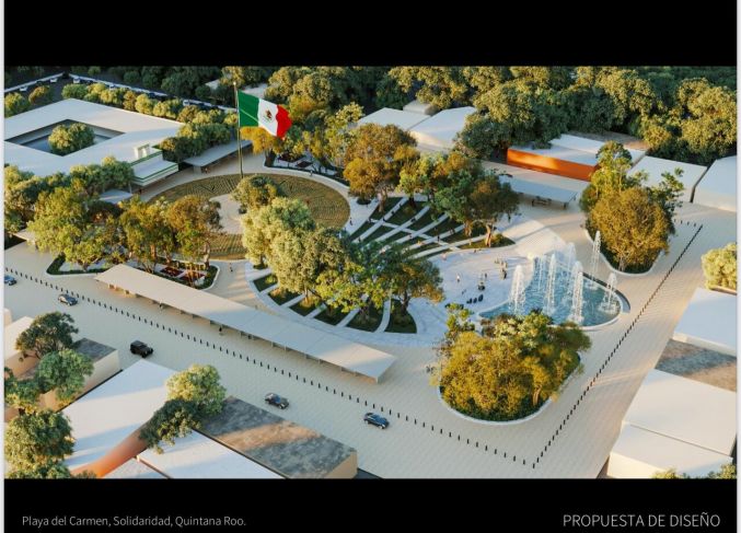 La modernización de esta plaza se da en el marco del 30 aniversario municipal y se espera esté lista justamente el 28 de julio de este año, fecha que hace alusión al día que se hizo oficial la declaración de Solidaridad como el octavo municipio de Quintana Roo, en 1993. El arquitecto autor de la propuesta es Javier Muñoz Menéndez, quien diseñó el actual Senado de la República.