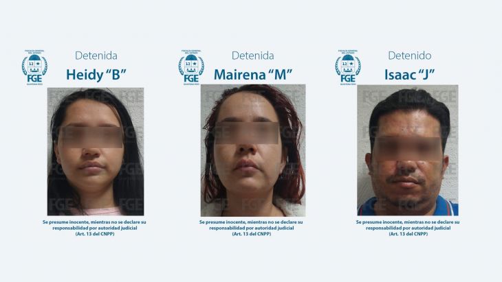 Los imputados son Heidy B., Mairena M. e Isaac J., quienes fueron detenidos mediante un oficio de colaboración y entregados en las instalaciones de la Fiscalía General de Quintana Roo, de donde fueron trasladados vía terrestre hasta Playa del Carmen.