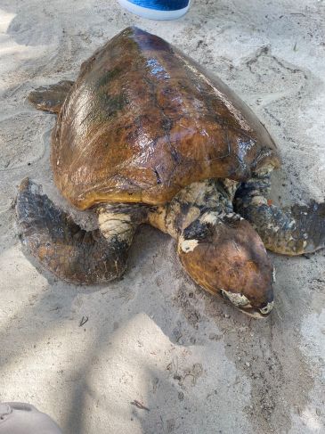 Esta mañana de jueves una tortuga juvenil hembra recaló con vida, pero enredada en plásticos, en playas de la Bahía Solimán, perteneciente al municipio de Tulum; la especie fue asistida por un grupo de especialistas compuesto por asociaciones y autoridades de los tres niveles de gobierno.