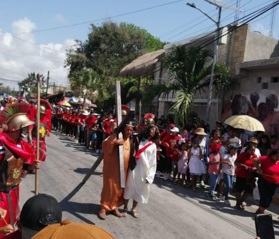 En este Viernes Santo, una de las principales celebraciones del cristianismo en la Semana Santa, centenares de fieles católicos de Tulum y hasta turistas extranjeros y nacionales recordaron la muerte de Jesús de Nazaret en un solemne Víacrucis.