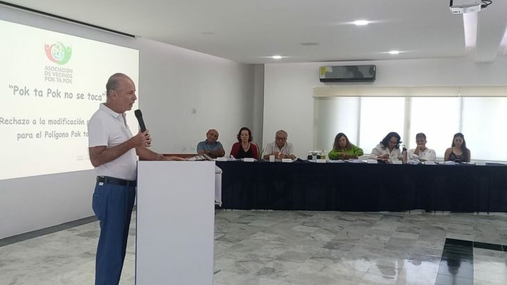 Y si bien ya se presentó un amparo, los vecinos cuentan ahora con el apoyo de fundadoras de Cancún, representados por Carlos Cardín; de la Asociación de Hoteles de Cancún, a través de Jesús Almaguer Salazar, y de la Asociación de Clubes Vacacionales de Quintana Roo, mediante Miriam Cortés, quienes estuvieron en la conferencia de prensa y externaron un rotundo no a este proyecto inmobiliario.