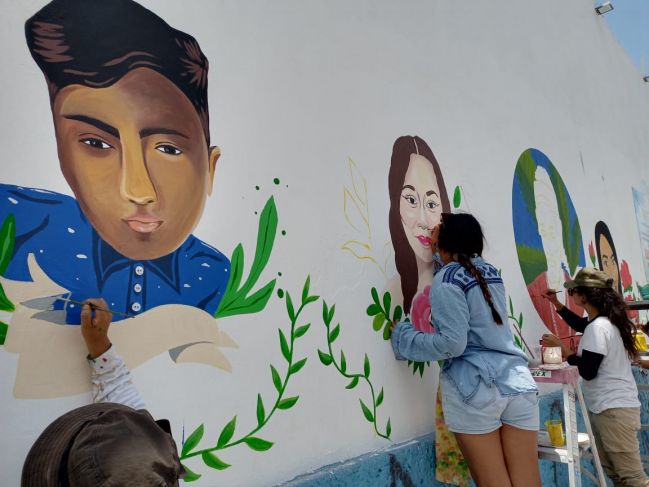 En punto de las nueve de la mañana, cerca de una veintena de familiares, principalmente madres, llegaron al edificio de la FGE, con escaleras, brochas y pinturas, para dibujar los rostros de sus hijas e hijos desaparecidos. En el sitio también pegaron carteles con sus nombres.