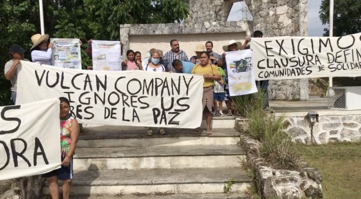 Para exigir la clausura definitiva de Sactun (antes Calica), filial de la estadunidense Vulcan Materials Company, un grupo de vecinos que habitan en los alrededores de la empresa se manifestó la mañana de este viernes 12 de mayo en el acceso a las instalaciones, en la carretera federal Playa del Carmen-Tulum.
