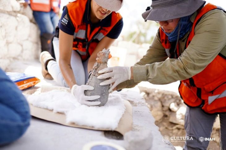 En el tramo 5 se reportan 781 rasgos naturales asociados, ocho mil 597 bienes inmuebles, 146 muebles, un entierro y 24 mil 636 tiestos analizados. En el 6, que lleva 96.01 por ciento de avance en la prospección, se han encontrado 21 rasgos naturales asociados, dos mil 830 inmuebles y 35 muebles. Y en el 7 han ubicado 207 rasgos naturales, 19 mil 862 bienes inmuebles, 303 muebles y 33 entierros, muchos de ellos con ofrendas.