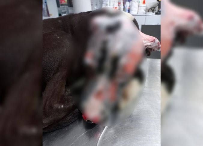 El can permanece internado en Mérida, Yucatán, donde un equipo de veterinarios lucha por salvarlo. Permanece bajo observación, aislado y en cuarentena, así que por ahora no recibe visitas. Se le hacen curaciones dos a tres veces por día.