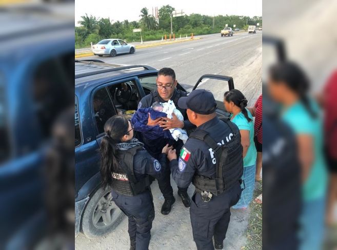 El bebé, que nació en perfectas condiciones de salud, y su madre fueron trasladados por los agentes a un hospital de Chetumal para su atención.