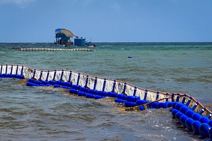 En su intervención en la mañanera, el comandante de la Guardia Nacional, David Córdova Campos, explicó que del 11 al 24 de julio se han acopiado mil 900 toneladas. Para estas labores tienen la participación mil 950 elementos de Semar, 12 buques sargaceros, 16 embarcaciones menores y han instalado nueve mil 50 metros de barreras.