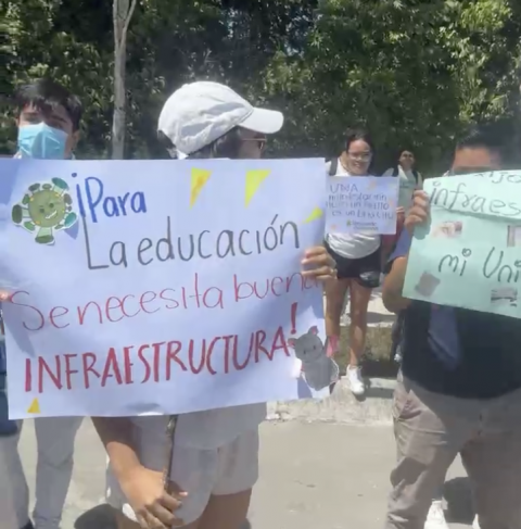 Fueron decenas de jóvenes quienes pancarta en mano denunciaron diversas irregularidades en el centro de estudios superiores, lo anterior luego de que en los últimos días mediante redes sociales habían sido insistentes las críticas sobre el mal estado de las instalaciones.