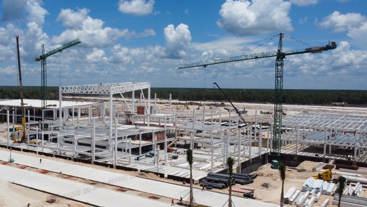 Durante la visita que realizó este fin de semana a Quintana Roo como parte de la supervisión que realiza cada 15 días del Tren Maya, el presidente Andrés Manuel López Obrador recorrió la obra del Aeropuerto Internacional de Tulum, de nombre Felipe Carrillo Puerto, el cual -aseguró- llevas un avance superior al 55 por ciento.