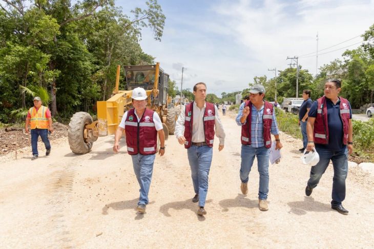 El presidente municipal Diego Castañón Trejo supervisó los avances de la ampliación en la avenida La Selva, uno de los principales accesos a Tulum; además, constató los trabajos de otras vialidades en proceso de pavimentación en la colonia La Veleta, en aras de mejorar el flujo vehicular y brindar una nueva fisonomía.