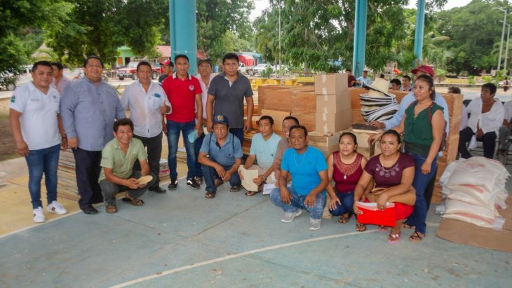 El funcionario enfatizó que a las 48 familias dedicadas a la producción de miel se les entregó lo siguiente: 120 juegos completos (caja, piso, 10 cuadros), 45 velos con sombreros, mil 350 copaceldas, 900 ceras estampadas, 45 cepillos desabejador, 120 cajas xunaan kaab, 45 agujas de traslarve, 140 abejas reinas, 10 cámaras de cría y mil 50 kilos de azúcar.