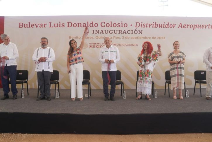 El presidente de México, Andrés Manuel López Obrador, inauguró este domingo el bulevar Luis Donaldo Colosio y el Distribuidor Vial del Aeropuerto internacional de Cancún, luego de haber llegado durante la madrugada a Cancún a bordo del Tren Maya, como parte de las pruebas del proyecto.