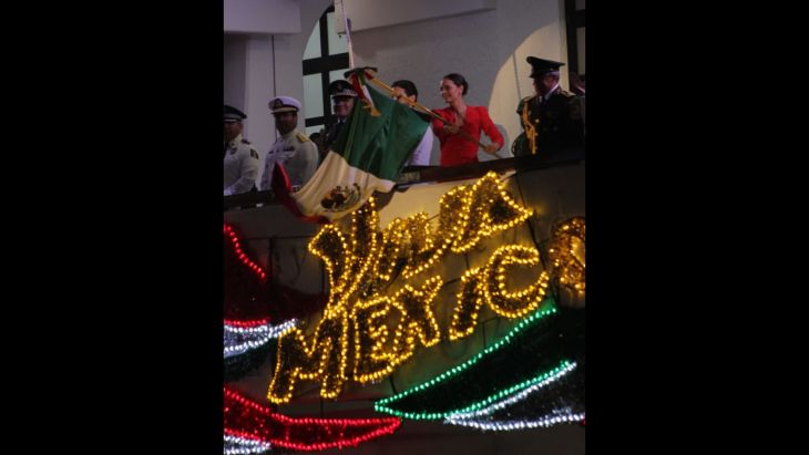Posteriormente, la presidente municipal de Benito Juárez, Ana Patricia Peralta de la Peña, salió por primera vez en su gestión al balcón del Palacio Municipal para iniciar los vítores emulando a los héroes que dieron Patria a la nación.