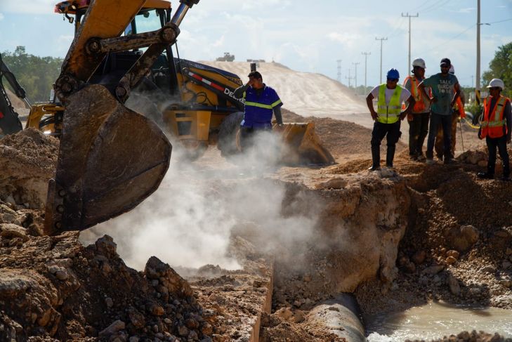 La empresa Aguakan emitió un comunicado en el que informó que mientras se encontraba en el proceso final de cierre de los trabajos programados de interconexión y puesta en operación de la línea de hierro dúctil de 32 pulgadas entre los cárcamos 9, 10 y Planta Aeropuerto, maquinaria pesada de la empresa ICA perforó dicha línea en un punto cercano, derivando en la fuga.