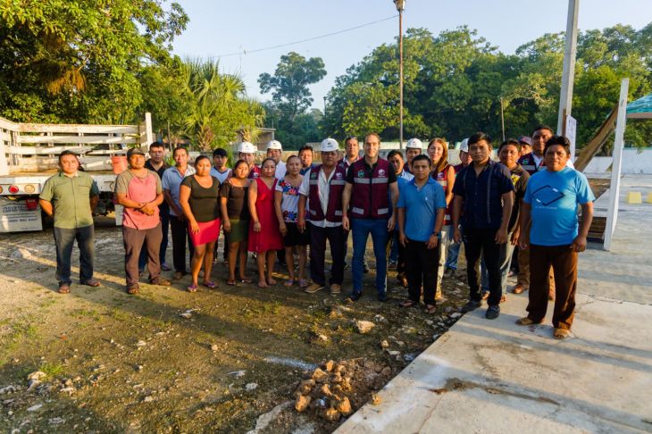 El presidente municipal de Tulum, Diego Castañón Trejo, puso en marcha los trabajos para la construcción de la estructura del arcotecho en la localidad de Sahcabmucuy.