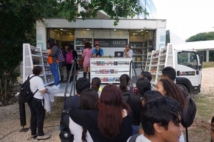 El Librobús, una librería móvil que ha recorrido varios puntos del país, llegó a la Universidad Autónoma del Estado de Quintana Roo (UQROO), campus Cancún, el lunes 16 de octubre. Este martes 17 y el miércoles 18 estará en Isla Mujeres, como parte de su gira por la península de Yucatán.