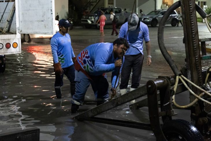 La labor operativa se reforzó con el fin de evitar los encharcamientos, con el apoyo de siete brigadas que abarcan el primer cuadro de la ciudad y las principales vialidades de Cancún, además de las que se encuentran por diferentes colonias y Supermanzanas.