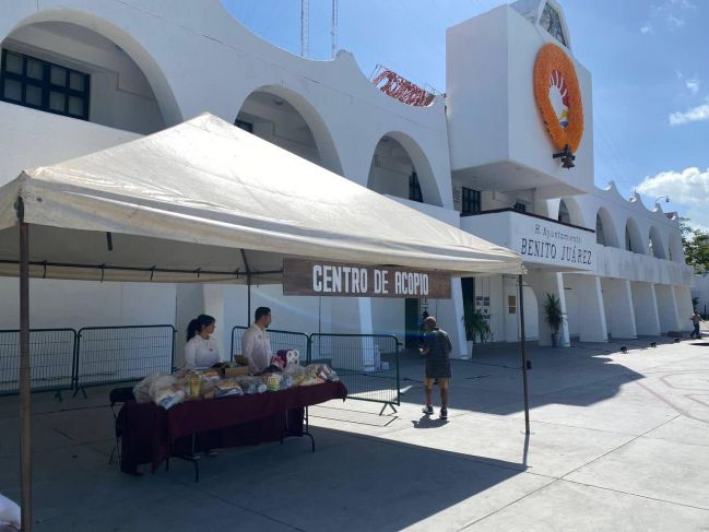 A la par, el Ayuntamiento Benito Juárez instaló su centro de acopio de ayuda humanitaria en la explanada del palacio municipal, en la avenida Tulum, registrándose hasta ahora una buena participación ciudadana.