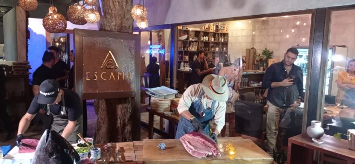 El chef asiático participó recientemente en el aniversario del restaurante Escama, en Tulum, donde parte del espectáculo fue verlo hacer el ronqueo y posterior destace del atún, acto que termina con el emplatado de platillos como el niguiri y sashimi.