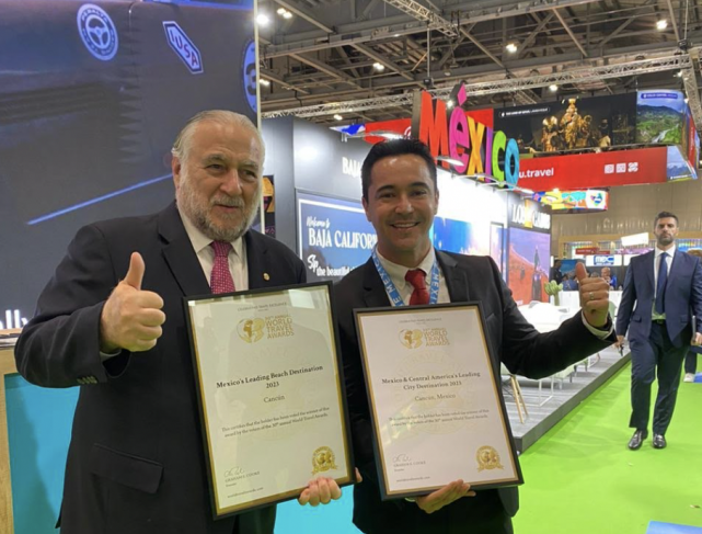 En el marco del World Travel Market (WTM) Londres 2023, uno de los eventos de viajes y turismo más influyente a nivel mundial, el secretario municipal de Turismo de Benito Juárez, Juan Pablo de Zulueta Razo, en representación de la presidente municipal, Ana Paty Peralta, recibió dos galardones de World Travel Awards (WTA) que reconocen a Cancún como destino destacado en el mundo, con total respaldo de expertos en la rama y por viajeros nacionales e internacionales.