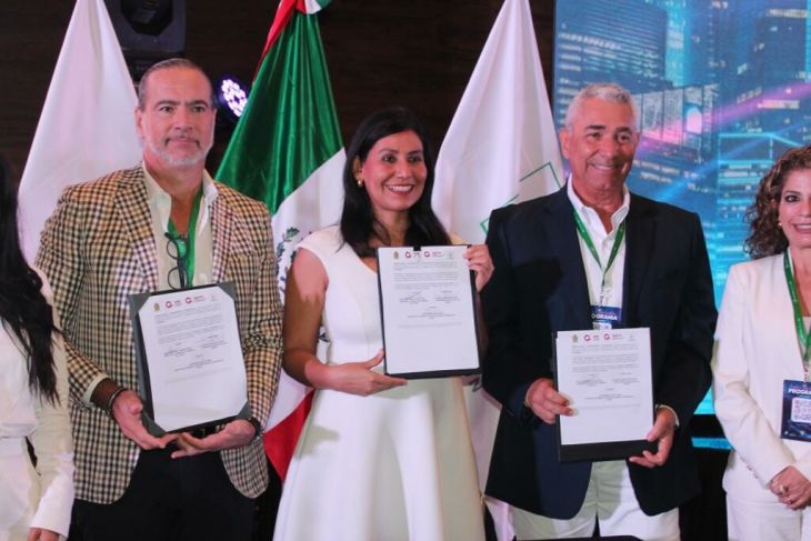 “El día de hoy estamos firmando un convenio con la Secretaría de Economía y con la Secretaría de Desarrollo Territorial Urbano Sustentable para juntos, como sociedad civil organizada, buscar nuevos retos de atracción de inversiones, que son muy importantes para el estado”, celebró Lemus Mateos.