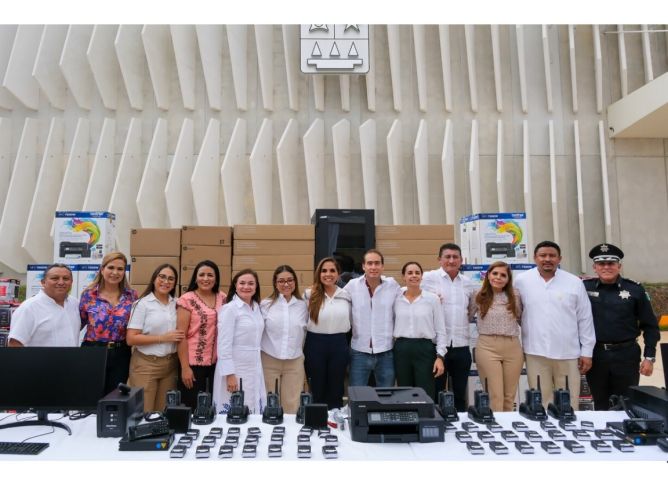 En el Complejo de Seguridad C5 de Cancún, se entregaron a las y los presidentes municipales y titulares de seguridad, 732 equipos de cómputo, 173 equipos de radiocomunicación, tres cuatrimotos, tres motocicletas, 15 vehículos y 21 bienes de oficina. Previamente, se presentaron dos nuevas torres de vigilancia móvil de la Secretaría de Seguridad Ciudadana (SSC) equipadas con cámaras de alta resolución, sistemas de monitoreo en tiempo real y comunicación de última generación.
