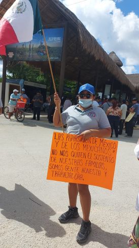 “Somos vendedores que hemos trabajado durante años en la playa pública de Tulum y ahora nos quedamos sin el lugar que daba sustento a nuestras familias, pedimos nos escuche y atienda nuestra petición, sólo queremos trabajar dignamente, no ser perseguidos o corridos de nuestra playa”, se leía en una lona que encabezaba la marcha, dirigida al presidente Andrés Manuel López Obrador.