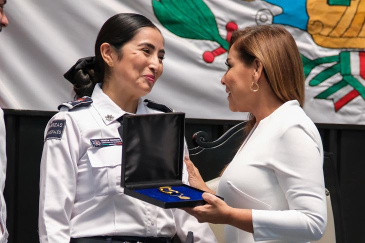 En Sesión Solemne del Congreso del Estado, con la presencia del diputado Luis Humberto Aldana Navarro, presidente de la Junta de Gobierno y Coordinación Política del Congreso, y del magistrado Heyden José Cebada Rivas, presidente del Poder Judicial, Mara Lezama reconoció la valentía, el compromiso, pero sobre todo la voluntad de actuar de los elementos galardonados.