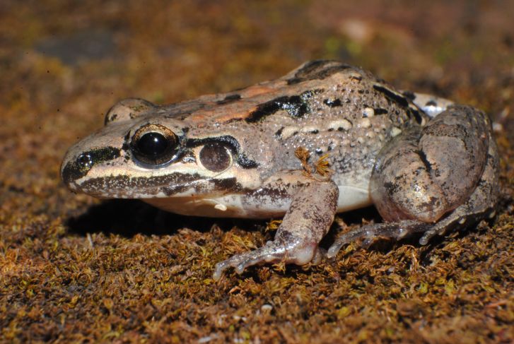 La rana de bigotes (Leptodactylus fragilis) es llamada así por una característica muy particular, que es una línea blanca que tiene sobre el hocico que parece un bigote. Es una ranita muy pequeña que mide 3.5 centímetros, esto las más grandes; no tiene un estatus de protección de riesgo, pero su principal amenaza es la contaminación del agua y la pérdida de hábitats.