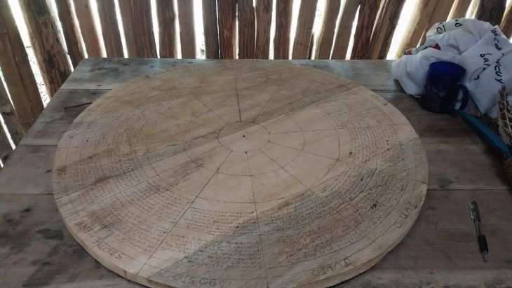 “Es el calendario que estoy haciendo este año, ahora es el regreso del Xok k’iin maya; a partir de este 25 de enero trabajaremos en los seis días que van hasta el 30 de enero, donde mediremos por cada 12 horas un mes, hasta llegar al 31 de enero, cuando cada hora corresponde a los 12 meses del año hacia adelante y en retrospectiva, para cumplir las 24 horas”, explicó.