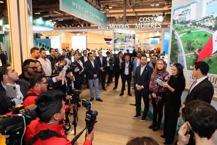 Ante los ojos de representantes de empresas internacionales y expertos en la rama de los servicios, autoridades del ayuntamiento de Benito Juárez presentaron la agenda turística de Cancún de este año en la Feria Internacional de Turismo (Fitur) 2024, con el compromiso de seguir diversificando el mercado turístico e impulsando los segmentos cultural, deportivo, de congresos y convenciones, entrenamiento y gastronómico.