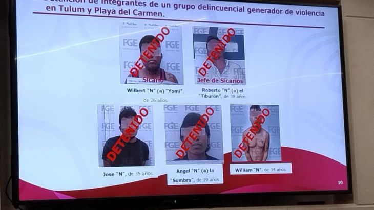 En conferencia de prensa del gabinete de seguridad de Quintana Roo, la Fiscalía General del Estado (FGE) informó que, en colaboración con la Guardia Nacional y la Policía Estatal, se logró la captura, en diligencias por separado, de cinco integrantes de un grupo criminal generador de violencia en los municipios de Tulum y Solidaridad.