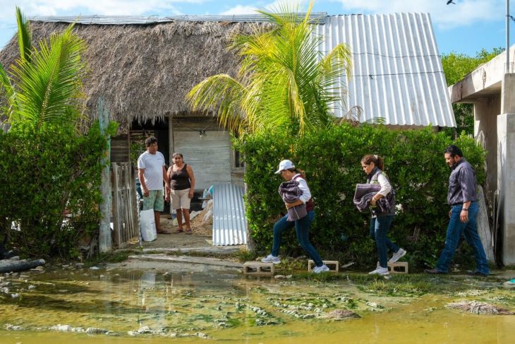 En territorio, Mara Lezama junto con personal del gobierno del estado que ha trabajado desde el primer día atendiendo las afectaciones, recorrió las calles acompañada de la presidente honoraria del DIF Quintana Roo, Verónica Lezama, para también llevar despensas y cobertores a familias afectadas; además, visitaron el centro de salud para verificar que cuente con medicamentos suficientes para la población.