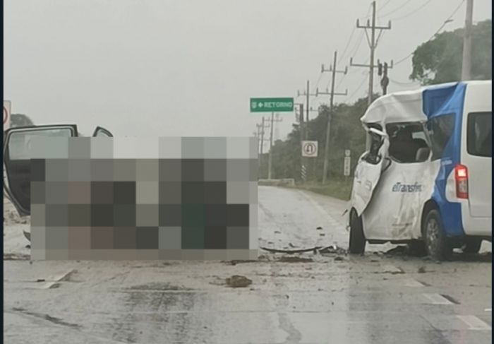 La tarde de este domingo se registró un fuerte accidente automovilístico entre un coche modelo Ertiga de la marca Suzuki y una camioneta Hiace Toyota de una empresa transportadora de turismo, en el tramo carretero Tulum-Playa del Carmen, cerca del hotel Palladium.