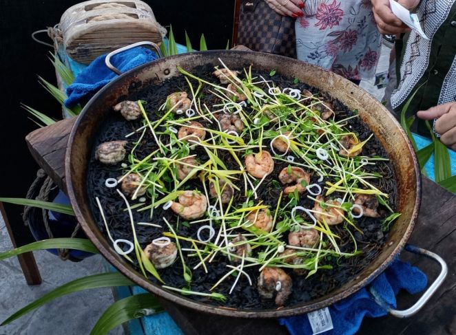 Al festival también llevaron un platillo hecho con longaniza negra de Temozón como ingrediente local y ostiones zarandeados, que si bien los ostiones no son locales, se prepararon con ingredientes y productos al alcance en esta zona.