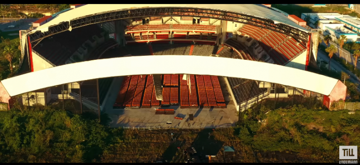 El recinto aparece con sus butacas rojas, unas aún con parte de los plásticos como si fueran nuevas pero las manos de Till Lindemann las desgarran con facilidad por el deterioro en que están.