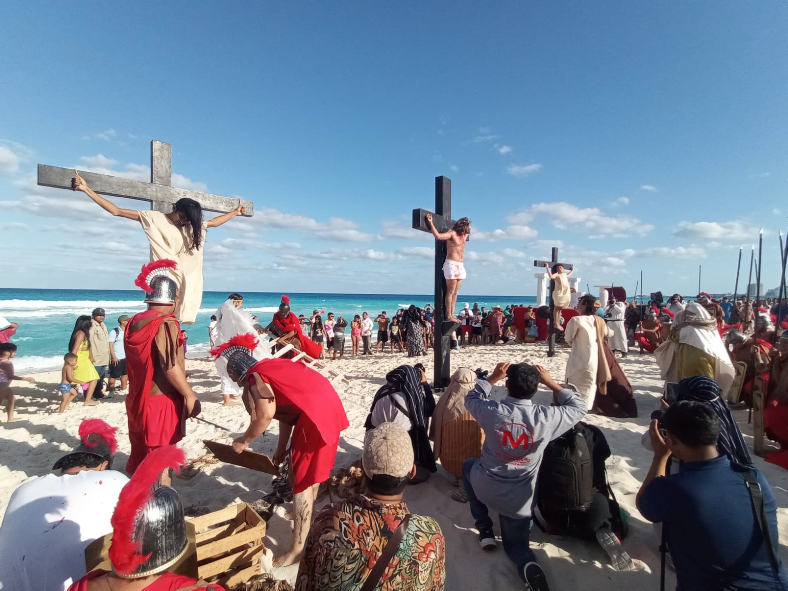 Además de esta representación en la playa, en todo Cancún fueron alrededor de 22 congregaciones religiosas más las que tuvieron alguna conmemoración de este tipo por la Semana Santa.