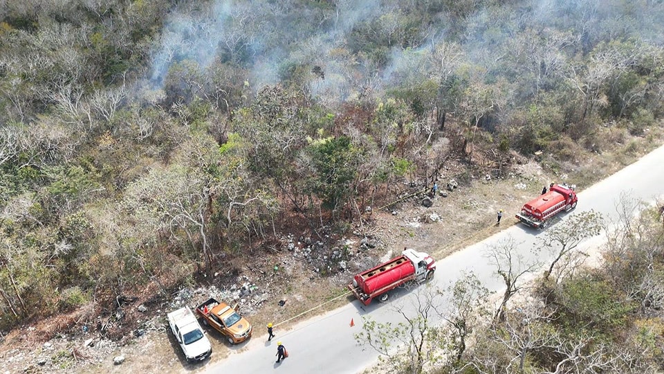 Dijo que también están atendiendo un incendio en la carretera Tulum-Cobá, pero el siniestro de la colonia Marites es donde se han concentrado ya que ha consumido decenas de hectáreas.